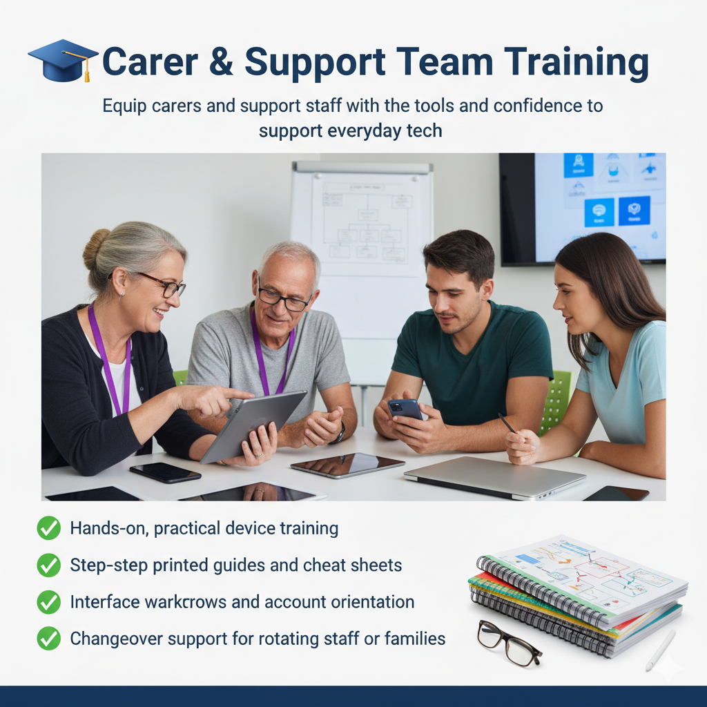 Equip carers and support staff with the tools and confidence to support everyday tech.