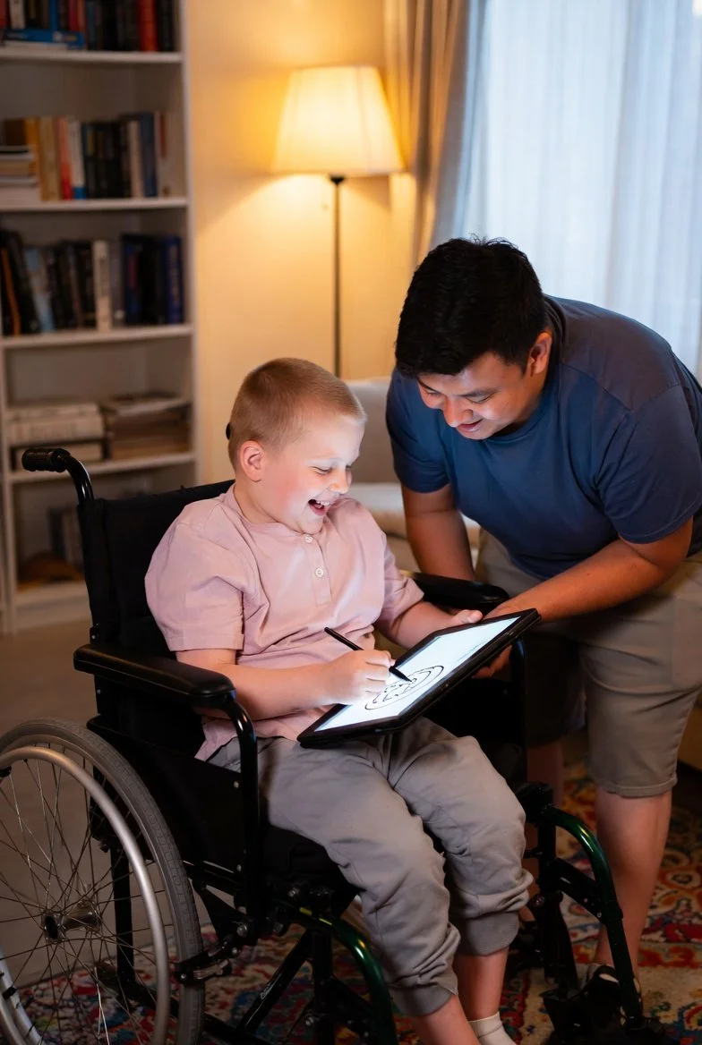 Orchestration to Outcomes™ is my trademarked method for identifying communication barriers, mapping capacity, simplifying daily routines, and coordinating support teams and allied health professionals toward a common digital goal. Where Ecothesis™ focuses on designing the environment, Orchestration to Outcomes™ focuses on understanding the person, the team, and the workflow around them.